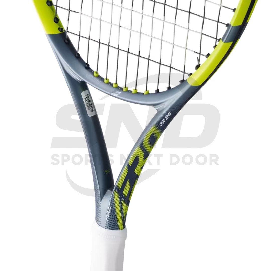 The Babolat Pure Aero Junior 26 Gen9 is a spin-focused tennis racquet designed for young competitive players. Its lightweight graphite frame, aerodynamic design, and open string pattern help juniors generate powerful topspin and control during rallies. Available at Sports Next Door, this racquet supports skill development and competitive performance.