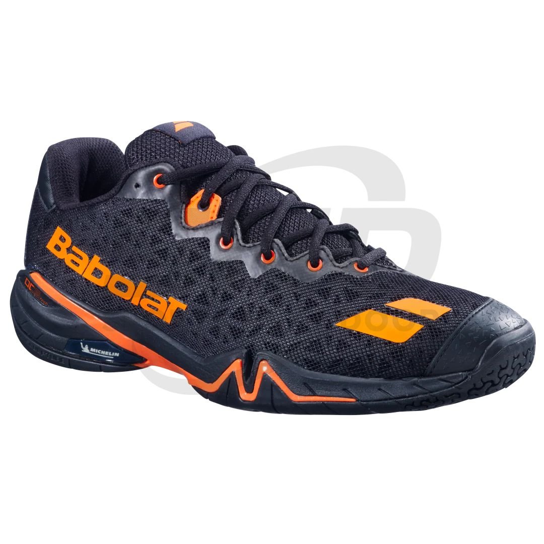 The Babolat Shadow Tour 4 – Black Orange badminton shoes deliver speed, stability, and comfort for competitive indoor players. Designed for aggressive footwork, they support fast direction changes and explosive movements.