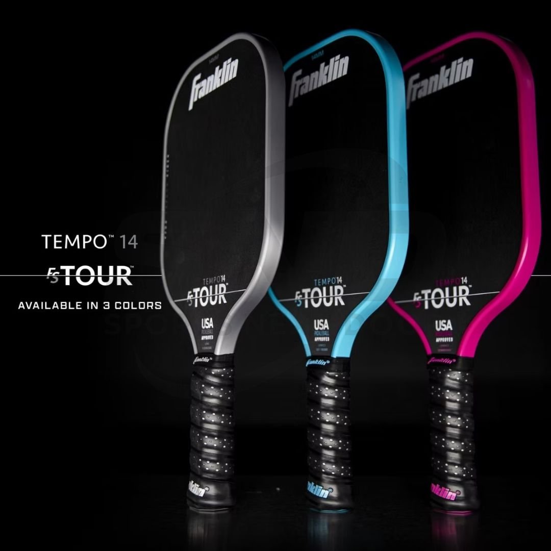 The Franklin FS Tour Tempo 14mm Pickleball Paddle delivers fast hands, powerful shots, and excellent spin. This paddle suits aggressive players who attack and control rallies.