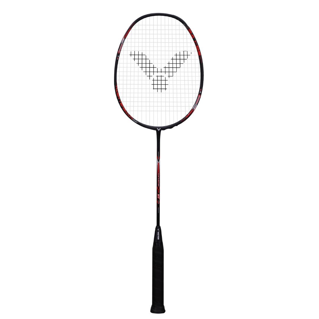 Unleash your attacking potential with the Victor Thruster EGL HT (Eagle High Tension), a high-performance racket engineered for aggressive players. Featuring the innovative Power Box frame and Fibre Reinforced System (FRS), this racket supports high string tensions (up to 34 lbs) while delivering exceptional stability, control, and smashing power.
